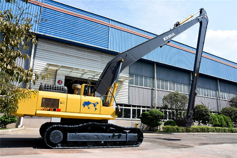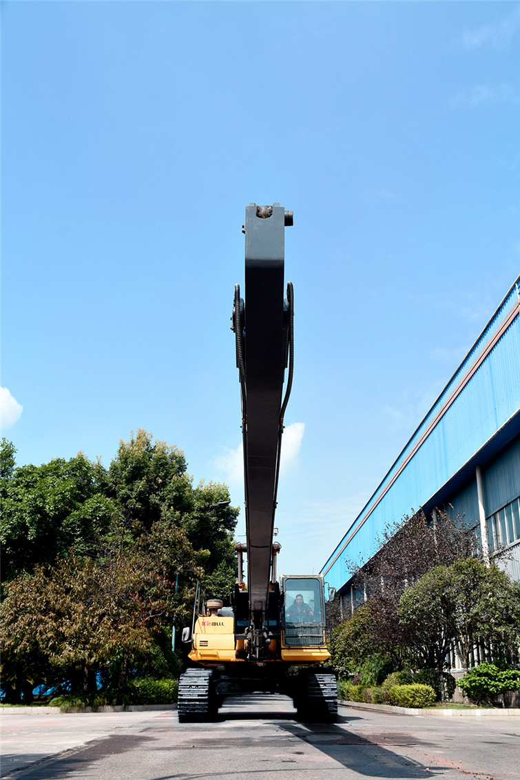 火狐36T两段式加长臂履带式挖机,动臂长12米,斗杆长9米,共计21米,其挖掘高度,挖掘深度,挖掘半径都得到了显著提升,利用这种超长型动臂和超长型斗杆,操作者可在受地面影响的特殊工况下轻松实现挖掘功能,发挥其巨大威力。广泛适用于土砂、混凝土等建筑搬运, 楼体拆解, 地铁出入口开挖,高速公路坡面修整, 河道疏通清淤及建筑基础、深沟等土石方挖掘作业,能完成标准挖掘机不能完成的特殊任务。 而今全国各地纷纷上马地铁建设,河道疏浚治污工程遍地开花,细分市场生机勃勃,占领一席之地,火狐势在必行!